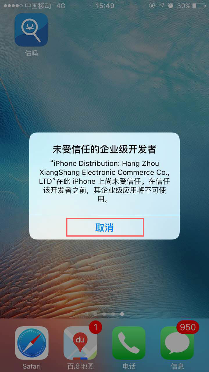 5.点击信任(如图下),安装完毕,点击APP图标即可使用。